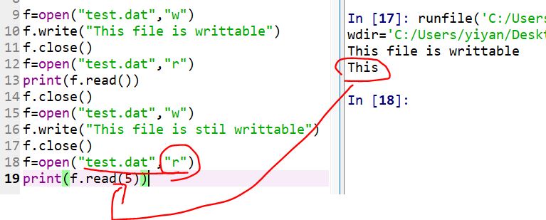 'f.close()' every time you change the mode to either 'w' or 'r' in