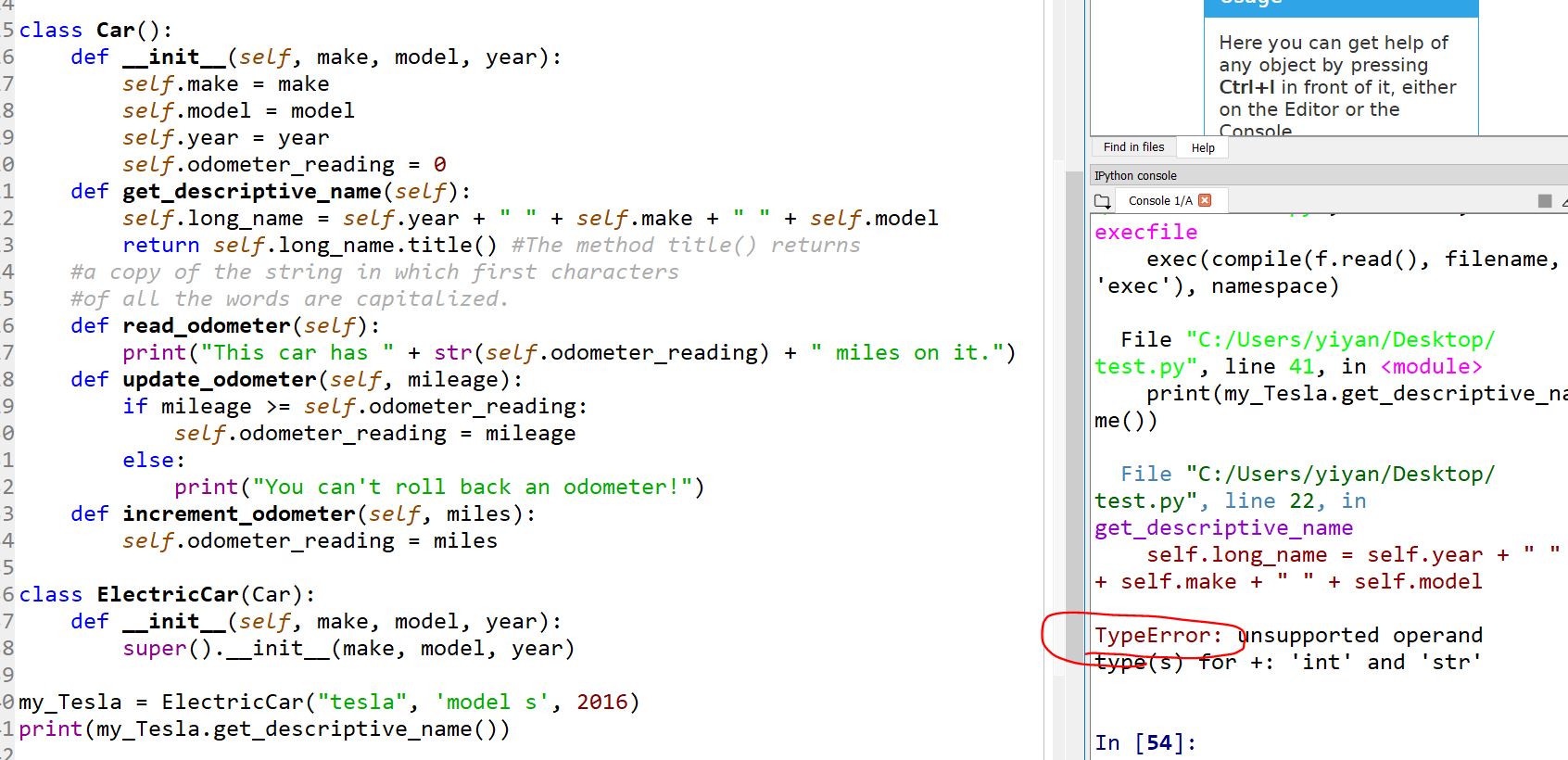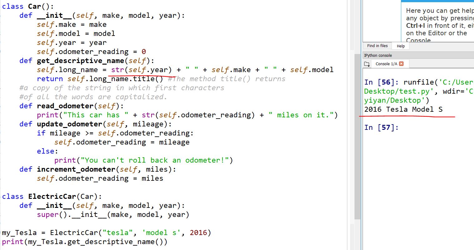 Oops! Something is wrong. The '2016' in my 'ElectricCar("tesla", 'model
