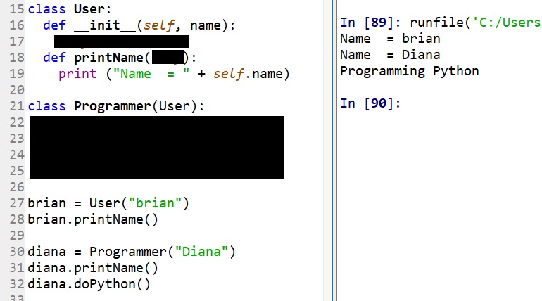 The object 'y' inherited the methods from class 'Person' (which makes