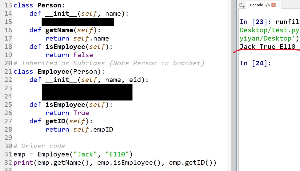 We have overridden the method __str__ from Person in Employee. By the
