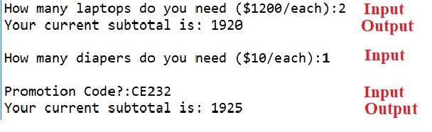 Diaper.totalDollar() method will ask the customer to provide the
