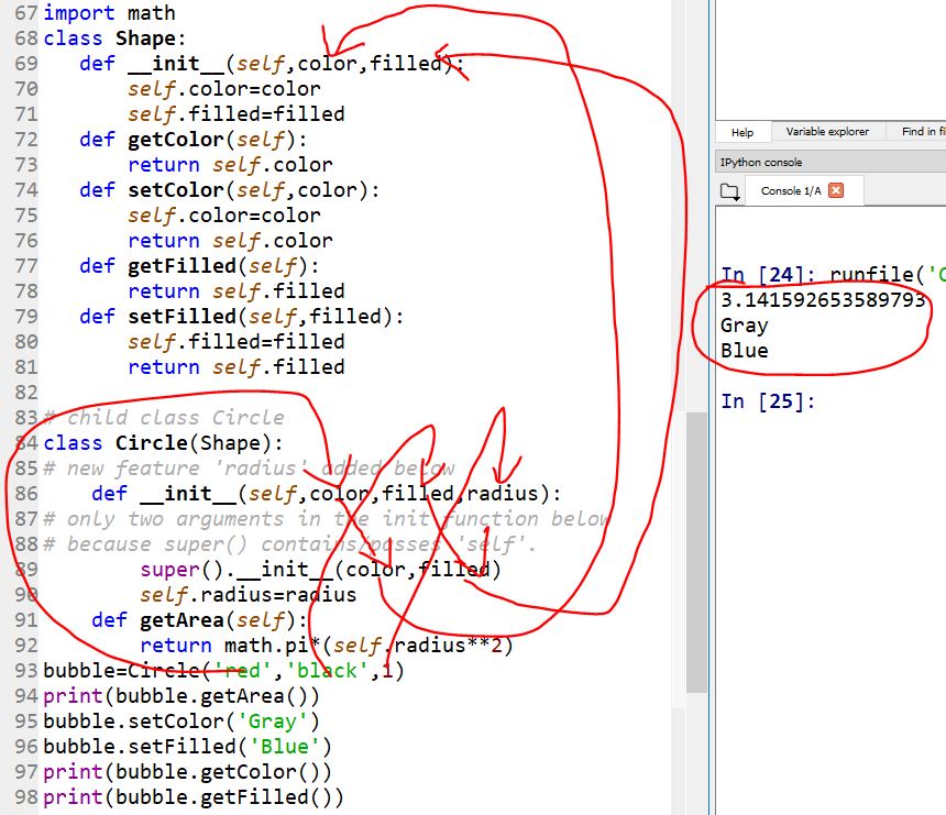 I instantiated an instance from the child class 'Circle' which doesn't