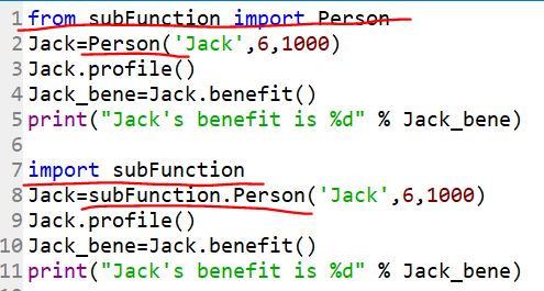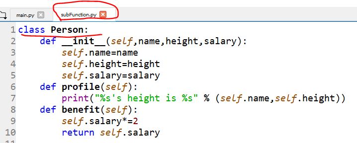 In the subFunction file, I have class 'Person' defined and a couple of