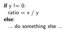 Revising our first example, the division operation can be guarded as