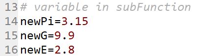 constants: newPi=3.15, newE=2.8, and newG=9.9. Use a main.py function
