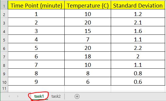 1. Data are presented in an excel file here. There are two workbooks in this excel file, one is 'task1' the other one is task2'.