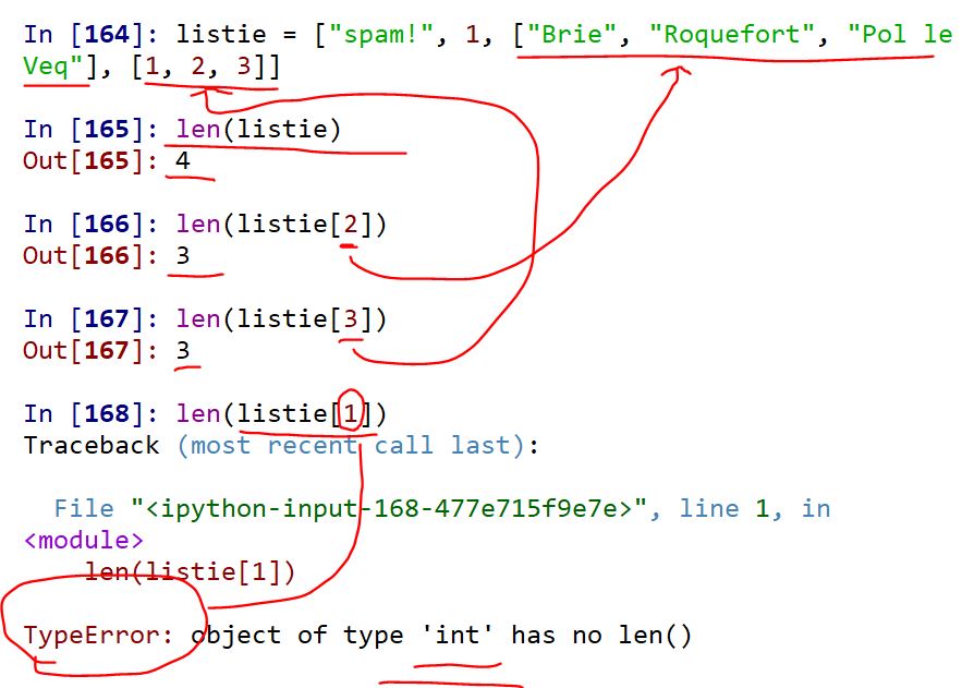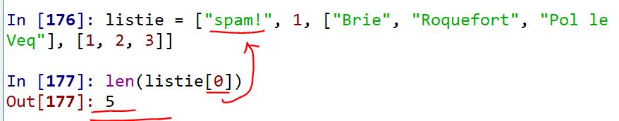 but len(listie[0]) will be 5. The length of "spam!" is 5.