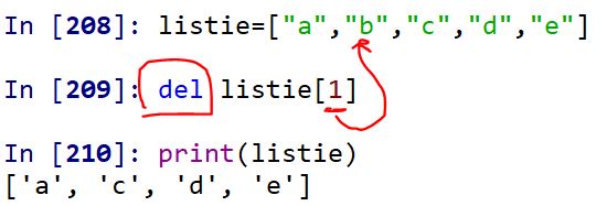5. How to remove 'b', and 'c' from the list: listie=['a', 'b', 'c', 'd', 'e']. (use three different methods)