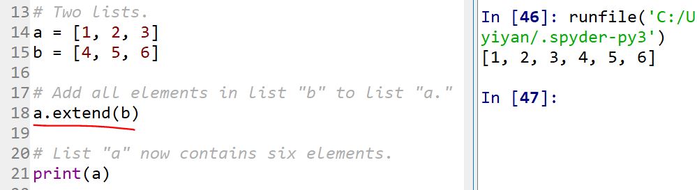 Becareful that you can't use .append() to do it, you should use extend instead.