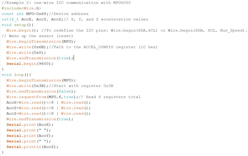 Communicate with MPU6050 - a 16 bit Accelerometer and Gyroscope.