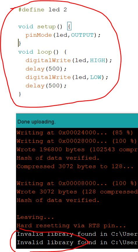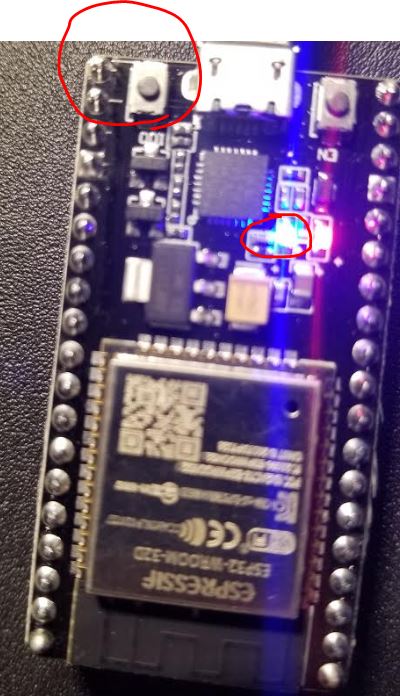 'Boot' button. After the code is uploaded to the board, the LED on the board will blink.