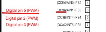 PE3 is the OC3A pin, it is the PWM Module 3A.