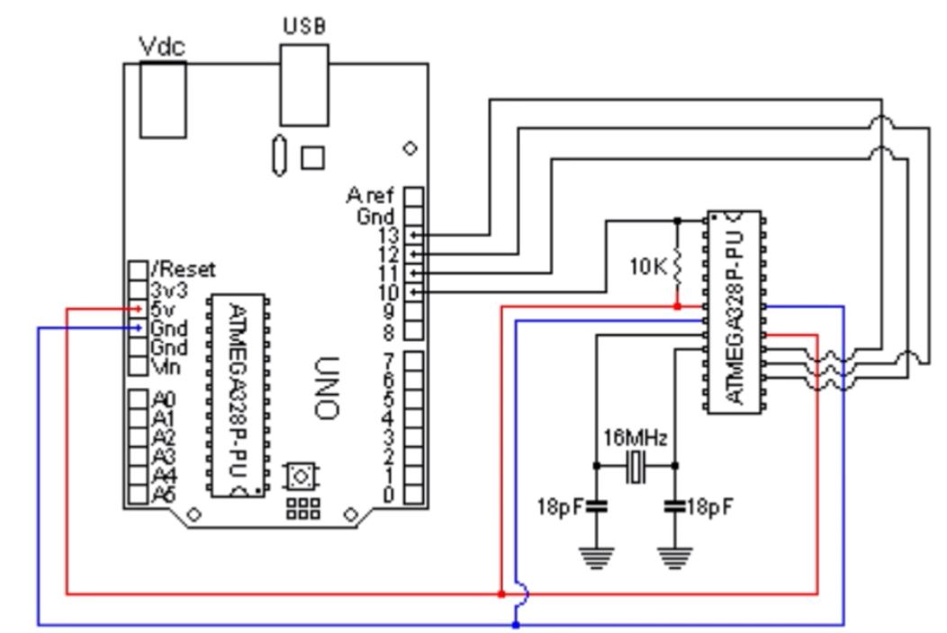 newly loaded 328P chip on the breadboard to the Arduino UNO board. Use