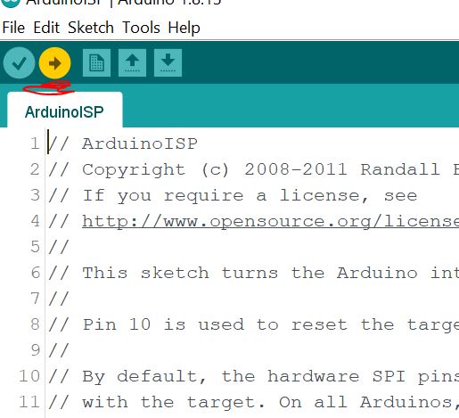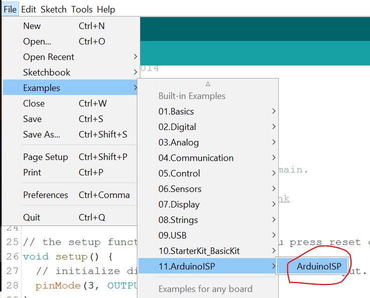 Go to File - Examples - ArduinoISP - ArduinoISP
