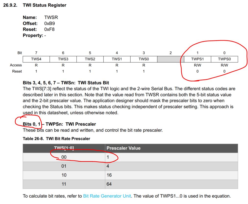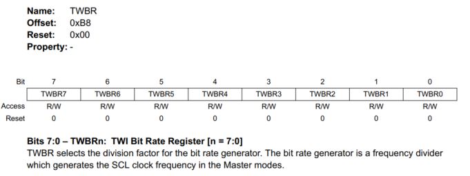 //Set the I2C clock speed to 400kHz. TWSR is 8'b0 by default