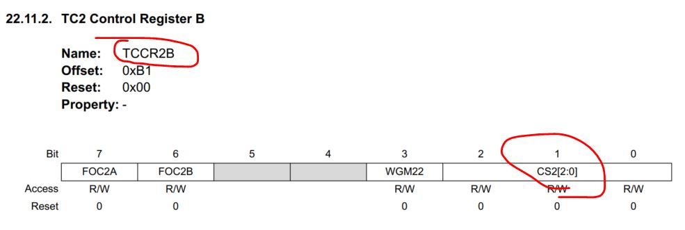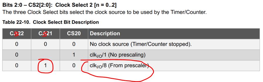 //Set the CS21 bit in the TCCRB register to set the prescaler to 8