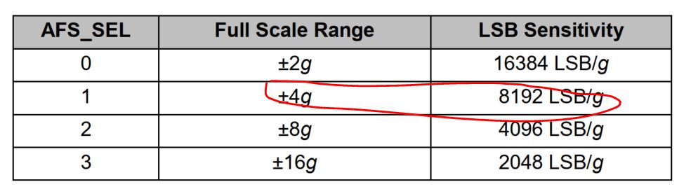 the accelerometer data within the -8192 and 8192 range. The 8192 was
