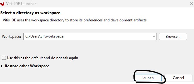 Launch Vitis IDE for C programming.