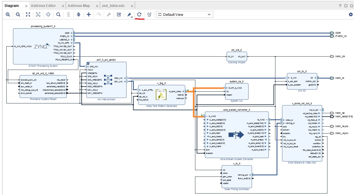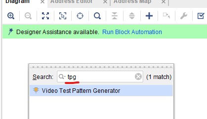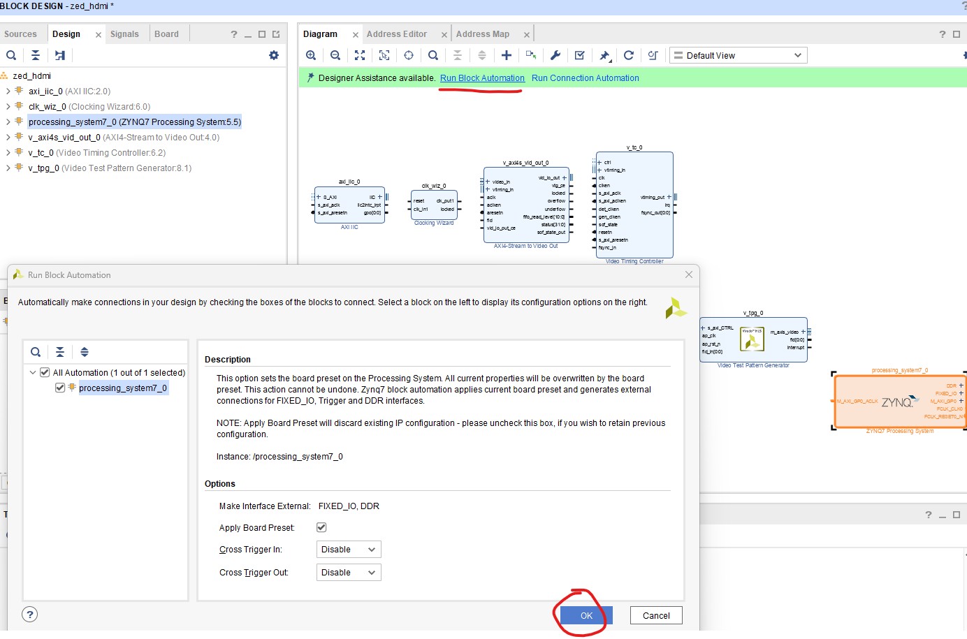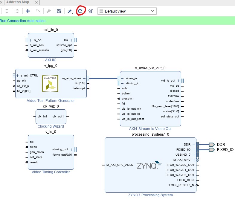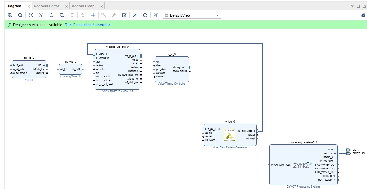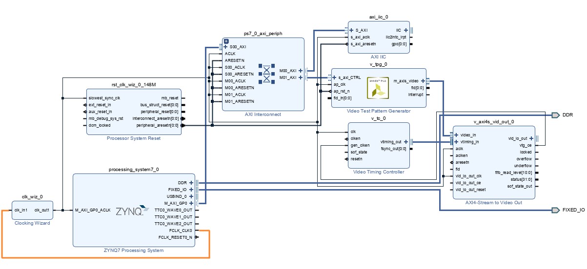 Start adding the Zynq PS, clock, video timing controller, I2C and AXIS2Video modules.