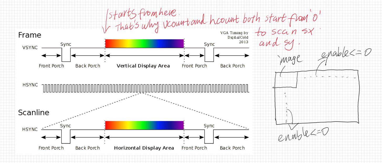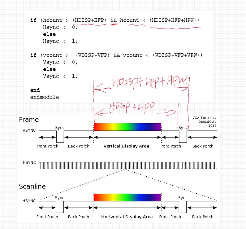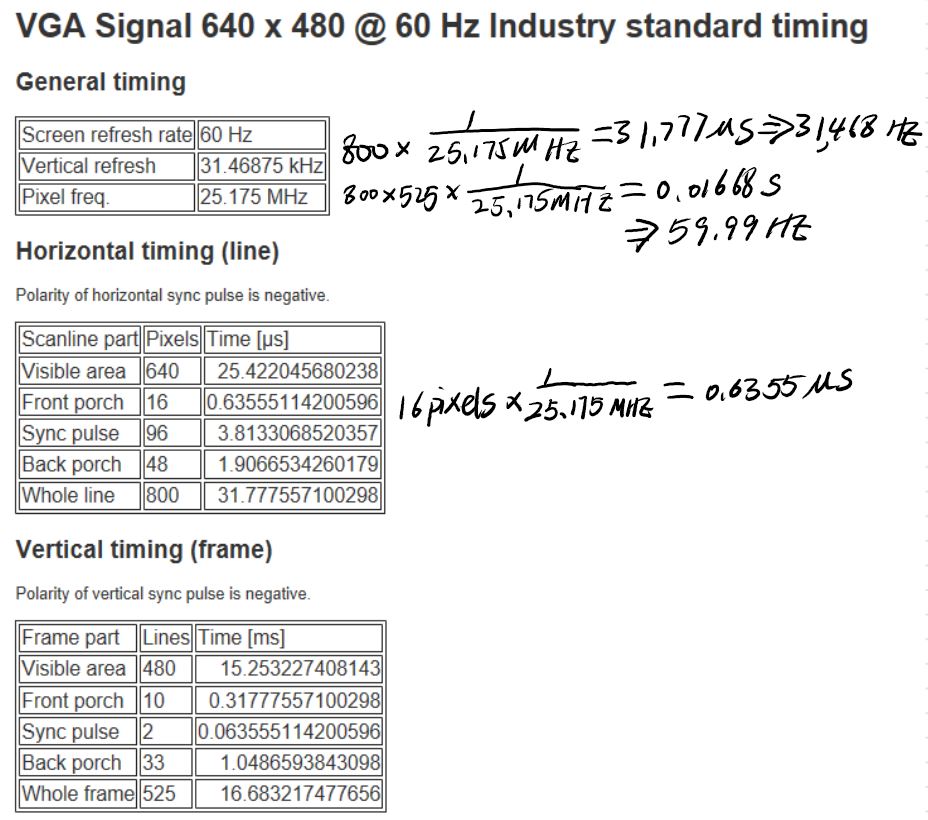 above, the column "Pixles" or "Lines" show the number of clock cycles