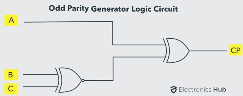 Odd Parity Generator - The total number of 1's in input and the parity bit are odd