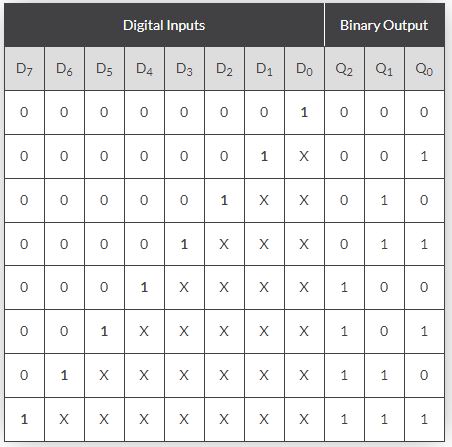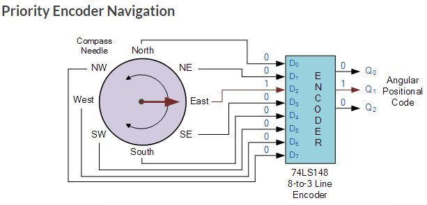a digital code by a 74LS148 8-to-3 line priority encoder and input to
