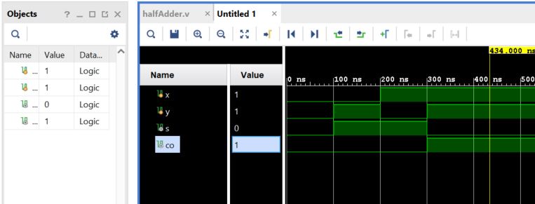 1. Repeat the simulation of Half Adder and Full Adder in Section 1. (10 points)