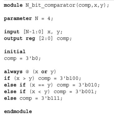 An N-bit comparator can be constructed by the 'if' keyword. Here, two
