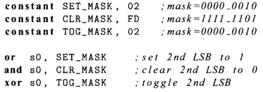 The following code segment shows how to set, clear, and toggle the second LSB of the SO register: