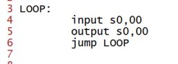 The following program load 0x13 to the input port and send 0x13 to the LEDs.