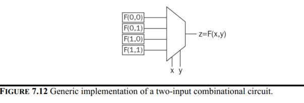 Combinational circuits are implemented by LUTs in an FPGA. A generic
