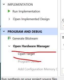 Then click 'Open Hardware Manager' to open a new target if it is the