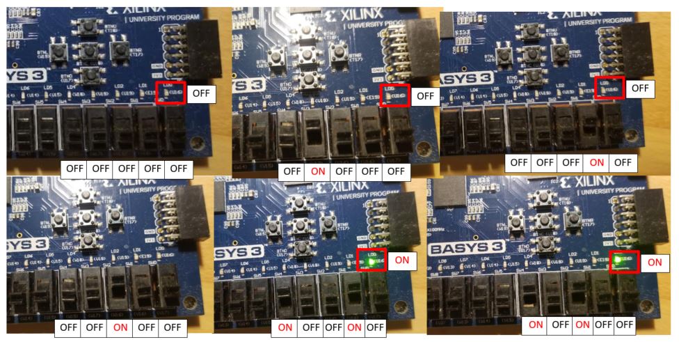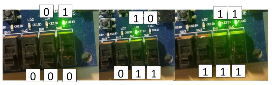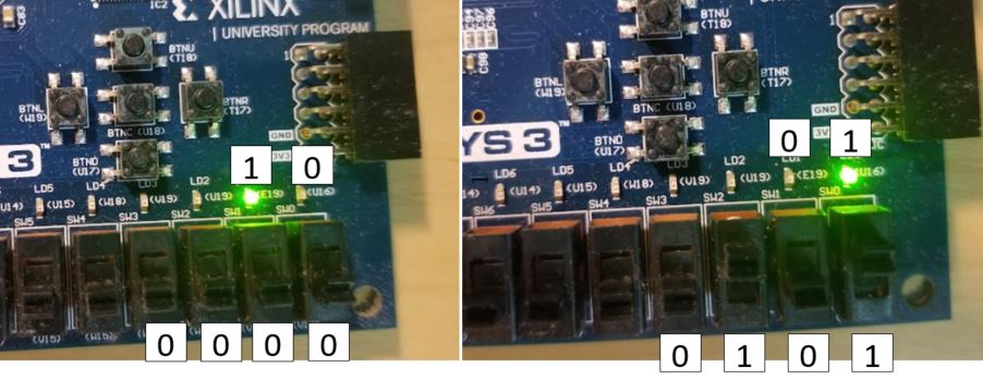 When the input is 0101 (MSB - LSB), led[0] lights up, otherwise, led[1] lights up.