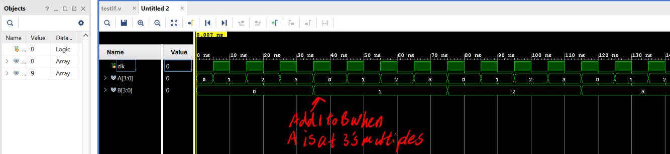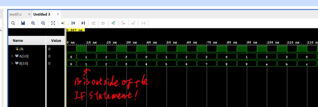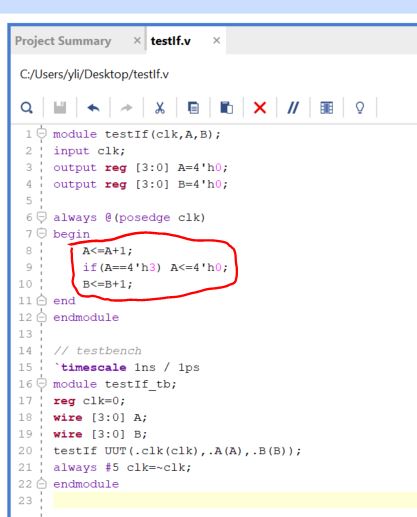'B<=B+1' below the 'A<=4'h0' line, B will have an increment of 1