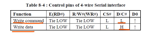 standard SPI pins. The fourth pin is D/C which is for Data/Command