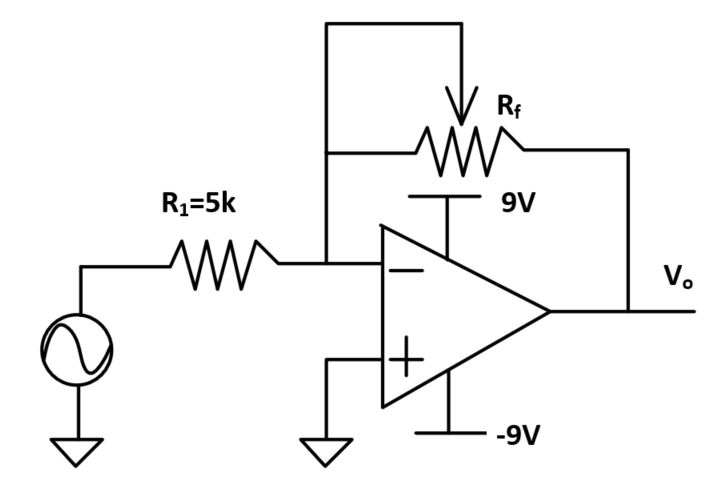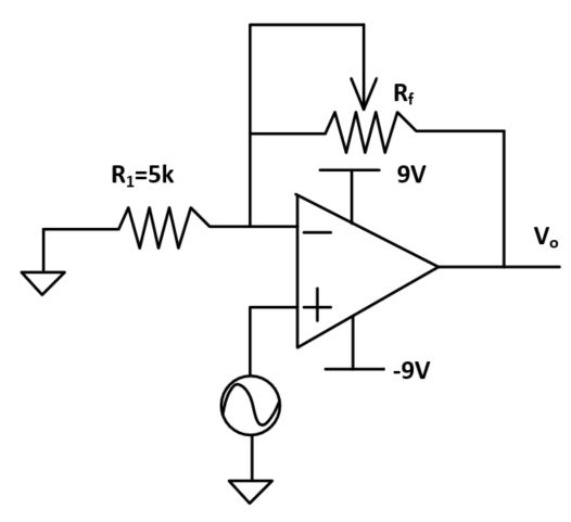 Vpp, 1 kHz) into the inverting terminal. Show the input and output of