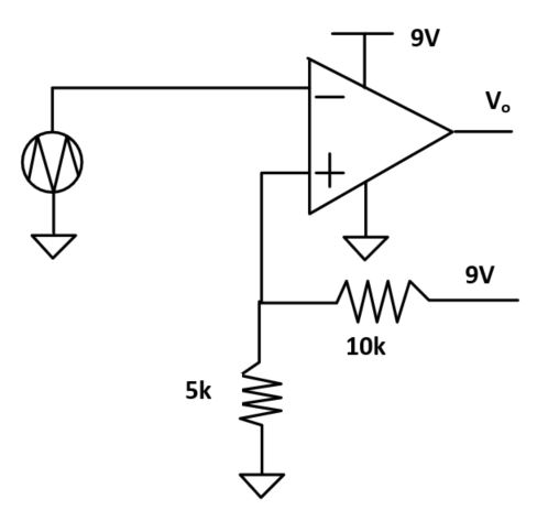 R1=5k resistor and a potentiometer (100k). Power up your OpAmp using