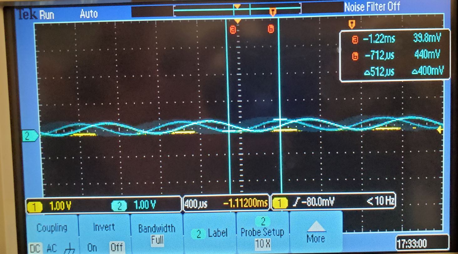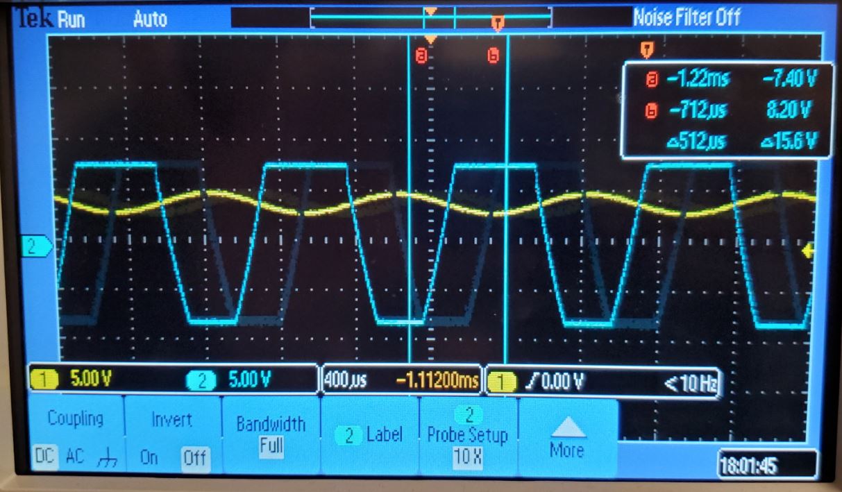 Figure 3. Maximum amplication voltage from Task 3's toplology- inverting configuration.