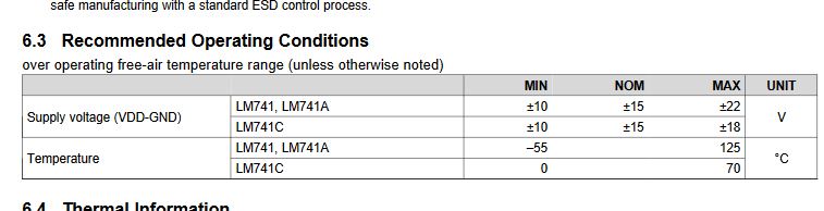 Figure 2: Max voltage rating of LM741 Op Amp.