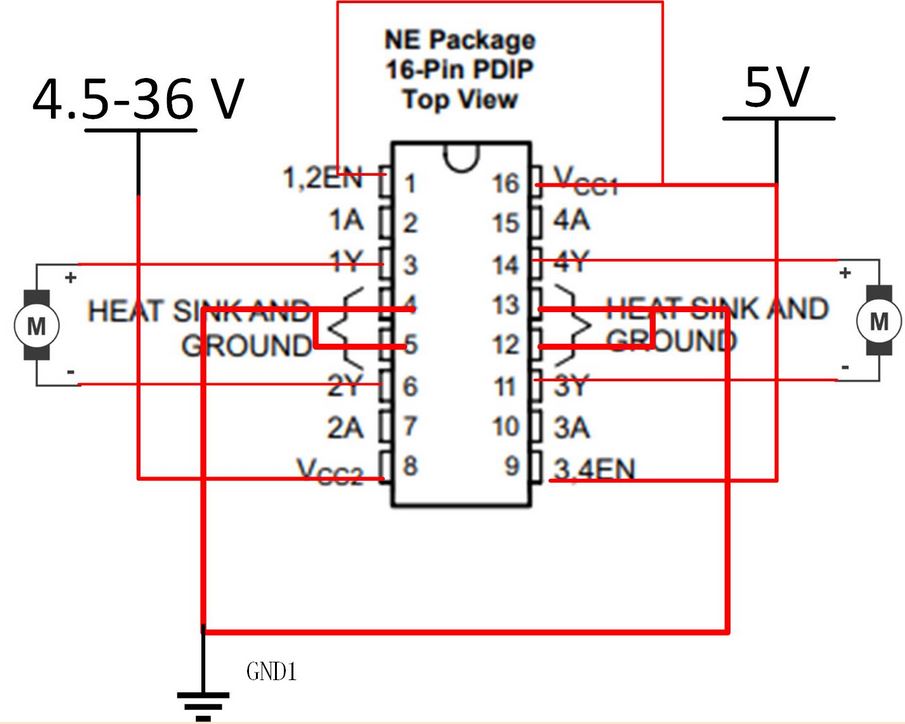 | The Lab required the design of a DC motor driving Circuit. Th circuit took information about its environment and used it to navigate a small car through a black loop path on the surface of a table. The motor driving circuit consted of one NE Package 16-Pin PDIP motor driver. Th driver recieved an on or off signal via a dual comparator circuit. The dual comparator circuit used two comparators to determine whether the left or right IR recievers recieved light from two IR LEDs (that were parallel to the left and right IR recievers). The comparator circuit maintained the connection between pins 2A and 3A to ground, allowing the motors to run, until either IR recievers no longer recieved light from their respective IR LED. When connection between the IR reciever and its respective IR LED was broken, the power to the motor on the same side of the car would be dcontinued. |