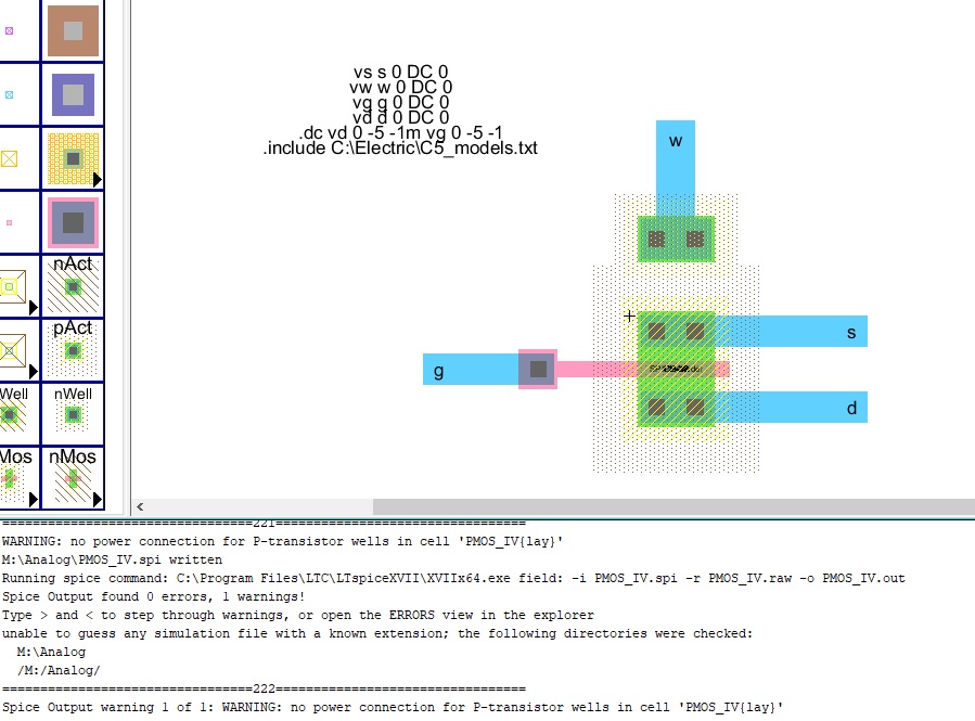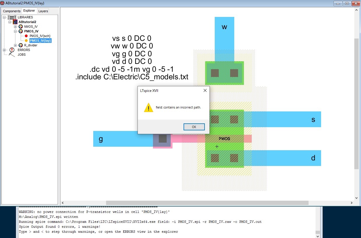 rechecked the file path for the LTSpice program, 2. I rebuilt the PMOS