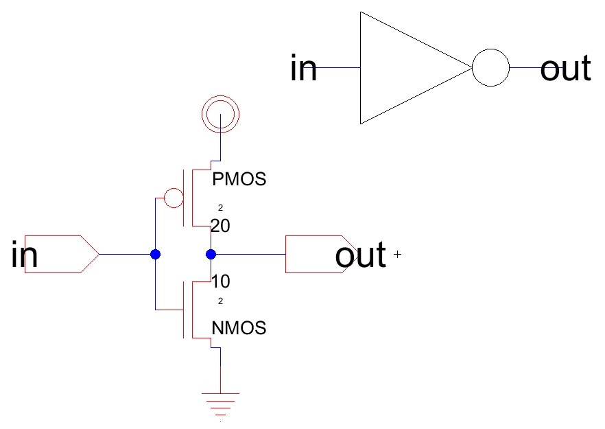 out and connected with a PMOS transistor on top and an NMOS transistor