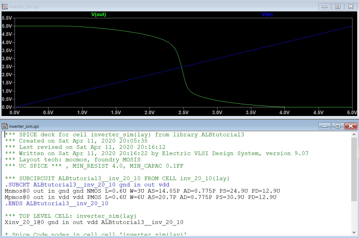 Figure 6. The LTSpice simulation of the layout form of the inverter. Output behaved as expected.