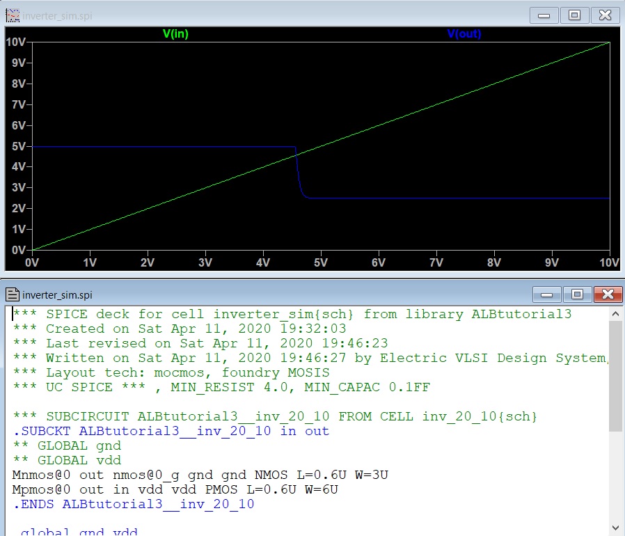 simulated output of V(in) and V(out) in LTSpice. The inverter switch