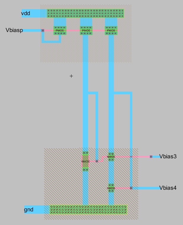 3 NMOS transistors. Vbias3, Vbias4. and Vbiasp were exported to pins in