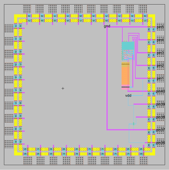 up to the padframe made in Lab 9. The schematic for the chip layout was