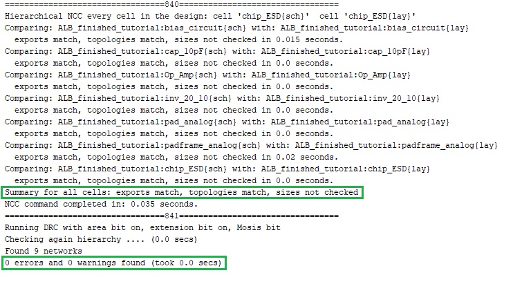 Figure 6. Successful NCC and DRC checks on final chip layout.