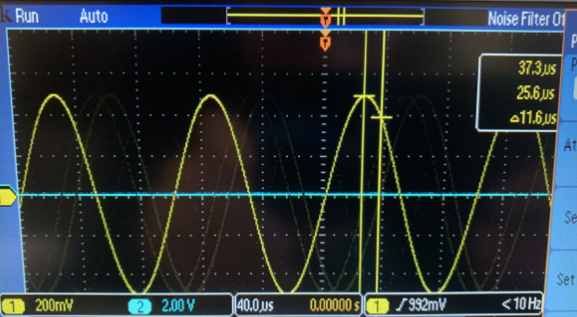 Figure 9. Finding time delay on the oscilloscope. Similar method used for finding attenuation.