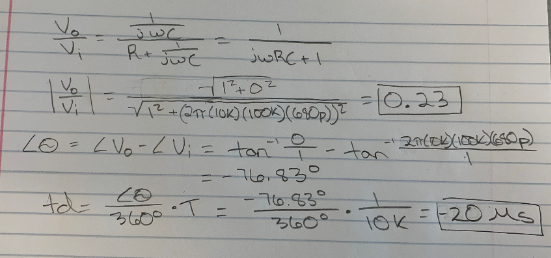Figure 7. Calculation for the attenuation and time delay of the RC circuit.