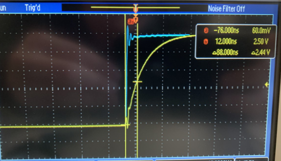 The RC circuit results shown in Figure 6 show a time delay of 88ns for
